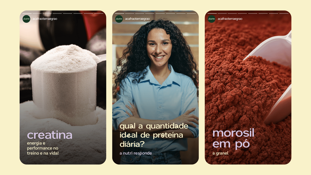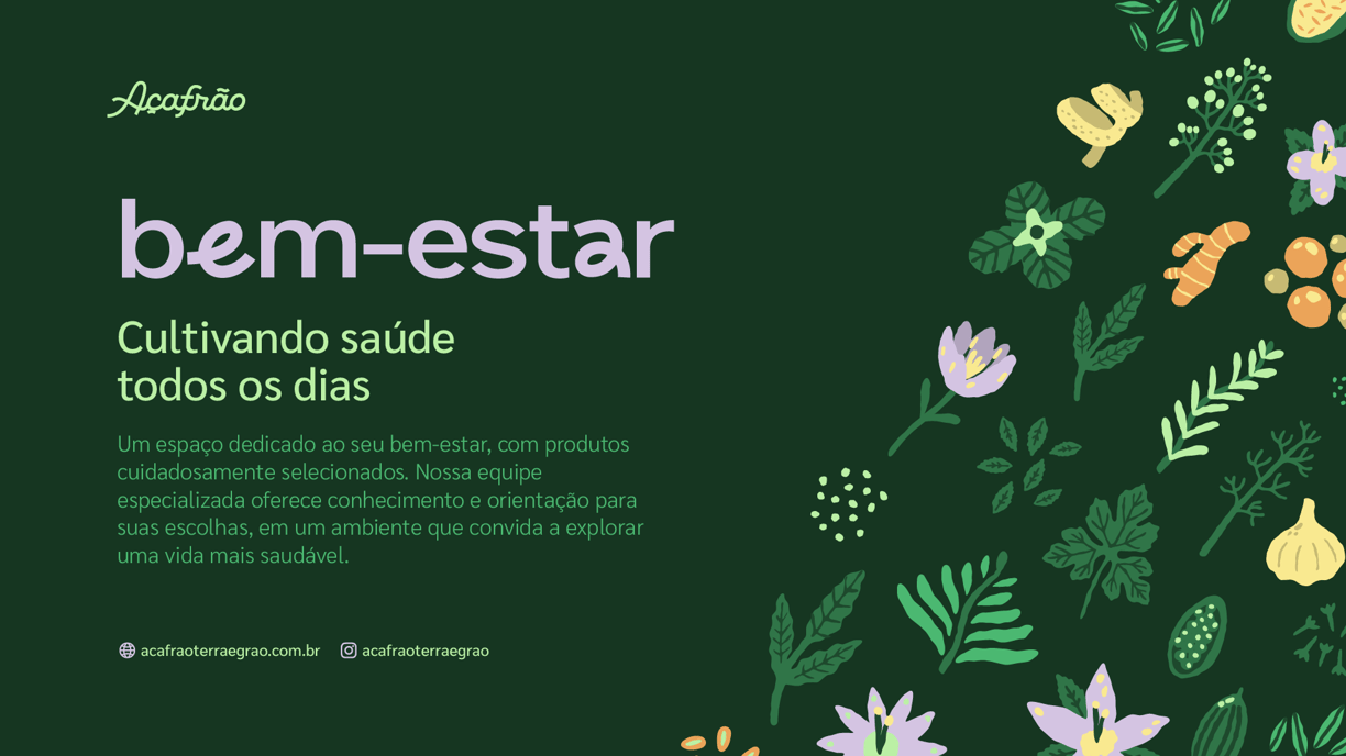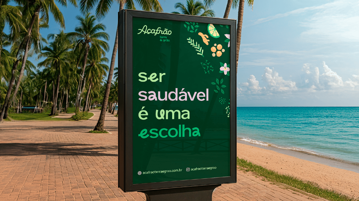 A Açafrão Terra & Grão é uma marca alagoana que nasceu como uma pequena loja de temperos e, ao longo dos anos, se transformou em uma referência regional em produtos naturais e suplementação. Com três unidades próprias em Maceió, o negócio vivia um momento de expansão importante: a abertura da sua primeira loja em um shopping, o que exigia uma comunicação mais sólida, sofisticada e preparada para novos públicos e contextos.
